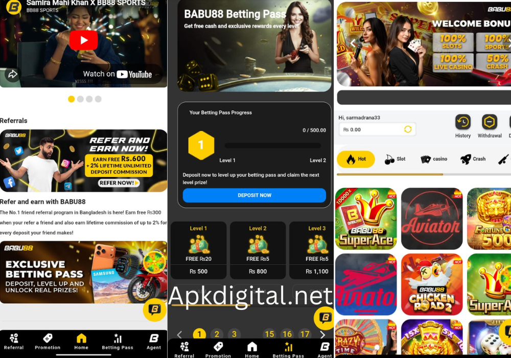 Babu88 is an online gaming and betting platform that provides users to play variety of casino games and sports-based games using real money. The platform is always available as a mobile app (APK) and sometimes through a web version, looking on the region. It combines entertainment, fun, and reward-based gameplay, giving players the chance to enjoy games while earning real money.